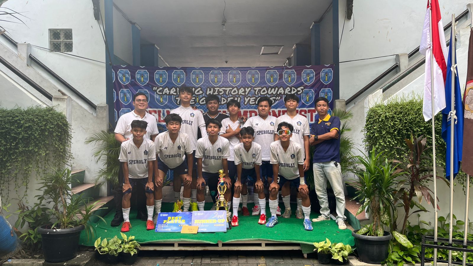 Minggu tanggal 28 April 2024, Team Volly SMP Negeri 22 Semarang kembali raih Runner Up dalam Carving History Towa The Golden Year PELNUS 2 CHAMPIONFEST yang merupakan kegiatan rutin tahunan yang diselenggarakan oleh SMK PELITA NUSANTARA 2 SEMARANG. Dalam kesempatan turnamen kali ini team yang diberangkatkan merupakan Team inti Futal Sperolly yang di damping oleh bapak Andreas Ricky KPU, S.Or. Sesi pertandingan pertama Team Futsal SMP N 22 melawan team dari SMP 18 dengan jumlah skor 3:0, dilanjutkan ke babak selanjutnya melawan team dari SMPN 36 dengan perolehan skor 3:1 yang berhasil meloloskan SMPN 22 menuju babak final. Pada sesi babak semi final SMP N 22 melawan SMP N 33 dengan perolehan skor 2:0 yang melanggangkan SMP N 22 menuju babak final untuk bertanding dengan SMP N 15, dan pada akhirnya membawa hasil RUNNER UP.